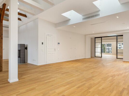 Herzstück der Wohnung ist der offene Wohn- und Essbereich, der durch eine elegante Schiebetür miteinander verbunden ist und sowohl Offenheit als auch Rückzugsmöglichkeiten bietet. Die angrenzende offene Küche ist mit einer moderne Einbauküche des Fabrikats Vaclucine und hochwertigen Einbaugeräten ausgestattet und fügt sich harmonisch in das Wohnkonzept ein.