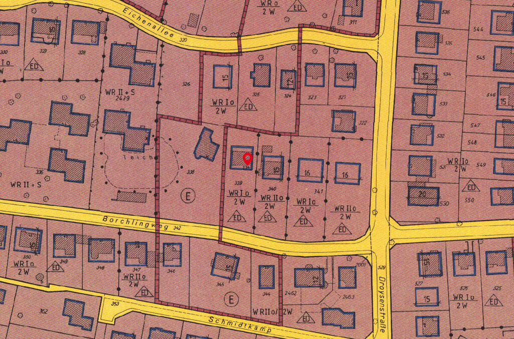 Alternativ eröffnet das Grundstück die Möglichkeit eines Neubaus, wodurch sich das volle Potenzial der sehr guten Lage optimal ausschöpfen lässt. Somit bietet das Objekt verschiedene Nutzungsperspektiven. Für das Grundstück gilt der Bebauungsplan Othmarschen 10, der wie folgt ausweist: Baukörper der Maße 16 m x 13 m, eingeschossige offene Bauweise (WR I o) mit ausgebautem Dachgeschoss, reines Wohngebiet mit max. zwei Wohneinheiten.