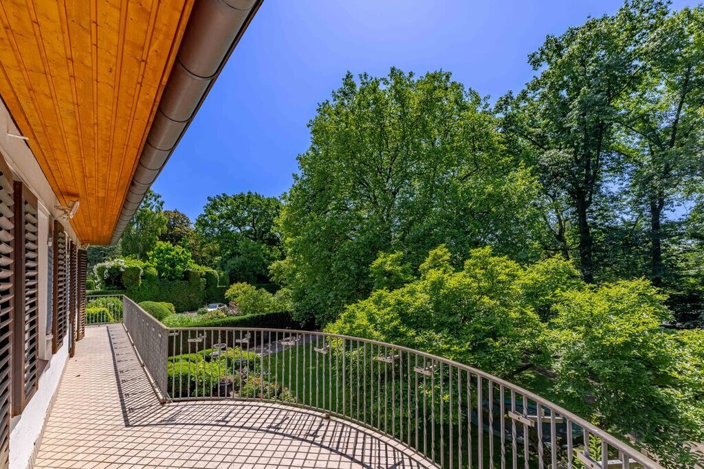 Im Obergeschoss stehen vier Schlafzimmer und ein großes Bad zur Verfügung. Eine Einliegerwohnung mit separatem Eingang erweitert das Raumangebot, ist jedoch sanierungsbedürftig. Insgesamt bietet die Villa ca. 365 m² Wohnfläche; ein großer Spitzboden (ca. 98 m² Nutzfläche) bietet weiteren Stauraum.