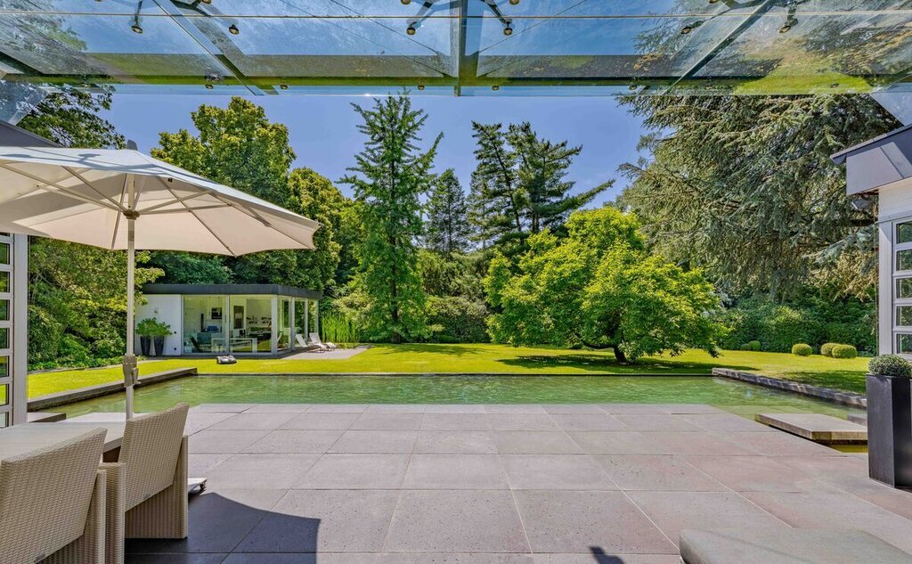 Schon beim Betreten des weiträumigen Wohnbereiches genießt man einen atemberaubenden Blick über die großzügige Terrasse hinweg in den traumhaften Gartenpark.