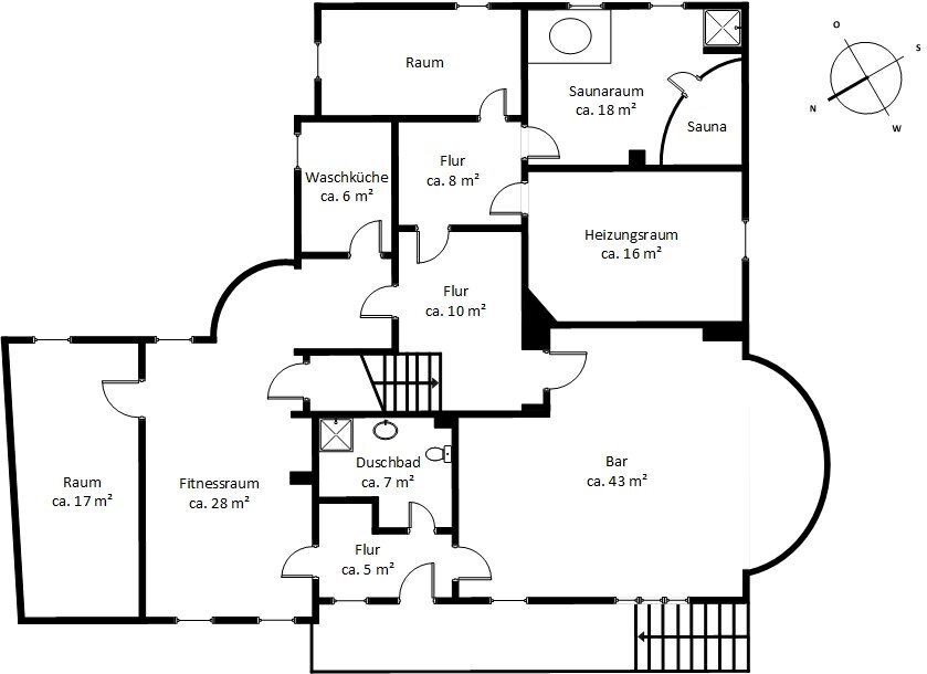 Das Untergeschoss verfügt über Sauna, Bar, Fitnessraum und Abstellflächen (ca. 173 m²). Wichtige Modernisierungen wurden bereits durchgeführt: Dach, Dämmung und Dachstuhl 2013, Heizung und Großteil der Fenster 2021.