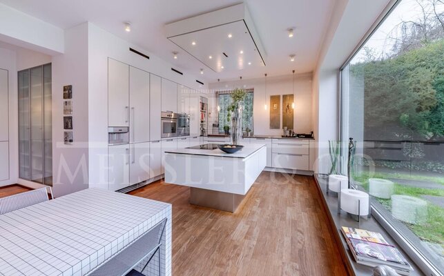 Die Architektenvilla wird über eine Fußboden- und Deckenheizung beheizt, die für ein besonders gutes Raumklima sorgen.
