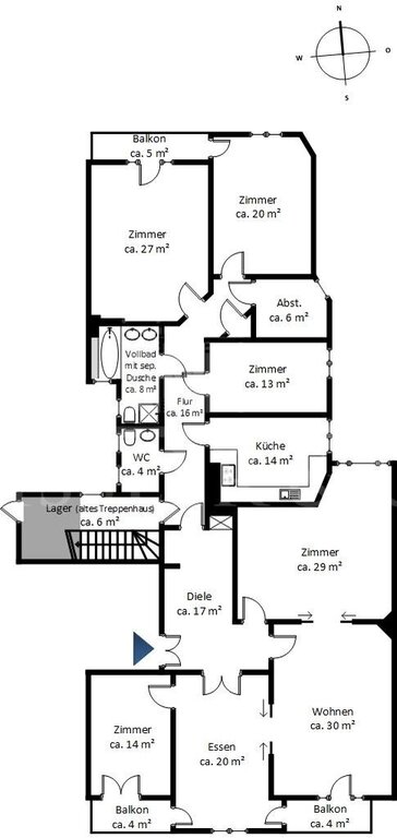 Die Wohnung befindet sich in einem renovierungsbedürftigen Zustand – ein Aspekt, der gleichzeitig enormes Potenzial birgt: Ob die Küche ins Berliner Zimmer verlegt und so ein offenes Wohnkonzept für "Essen – Wohnen – Leben" geschaffen wird oder ob ein zusätzliches Duschbad im Gäste-WC entsteht – hier gestalten Sie Ihr persönliches Wohnrefugium ganz nach Ihren Vorstellungen.