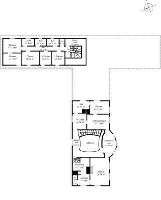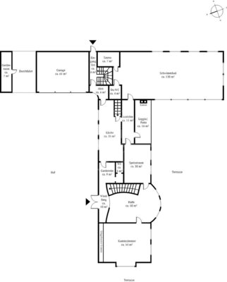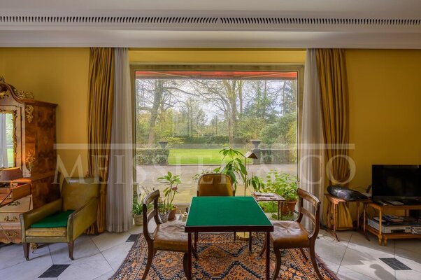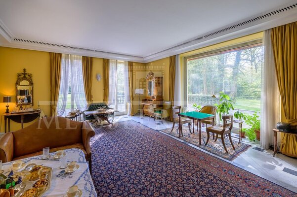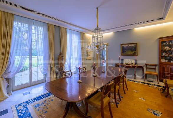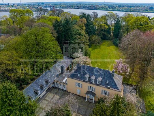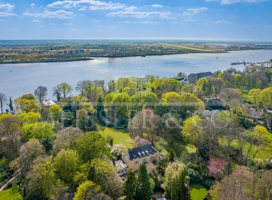 Das äußere Erscheinungsbild dieses Landsitzes an der Elbe hat eine klassische Formsprache und ist Zeugnis hanseatischer Baukultur zu Anfang des 20. Jahrhunderts. Eine lange Auffahrt führt am Seitentrakt des Gebäudes vorbei zu dem eigenen Innenhof mit mehreren Stellplätzen und drei Garagen. 1960 wurde das Hauptgebäude nach den Plänen des Architekten Pinnau modernisiert und um den Seitentrakt erweitert. Durch die großzügige Architektur hat die Villa eine Wohnfläche von ca. 600 m² und zusätzlich eine Nutzfläche von ca. 300 m². Von der hellen mit Marmor belegten Halle, von dem Kaminzimmer und von dem Speiseraum aus, genießt man einen wunderschönen Blick in den nach Süden zur Elbe ausgerichteten weitläufigen Park. Der ehemalige Angestelltentrakt über den Garagen bietet neben den Zimmern im Hauptgebäude viel Platz, um Familienangehörige sowie zahlreiche Gäste unterbringen zu können. Das große Schwimmbad im Seitentrakt der Villa lässt auch eine anderweitige Nutzung zu. Diese Immobilie bedarf einer Sanierung und kann daher von dem zukünftigen Eigentümer nach seinem persönlichen Stil gestaltet werden.