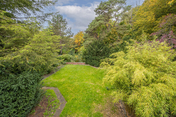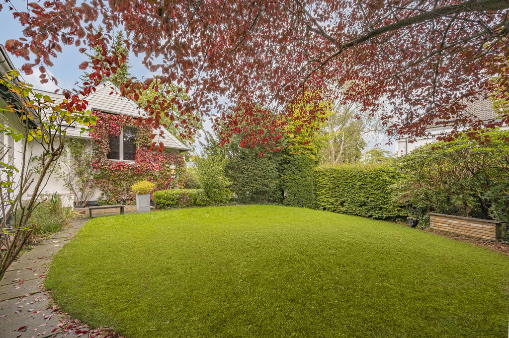 Auf einem ca. 1.199 m² großen Südwestgrundstück entstand hier im Jahr 1955 ein Architektenhaus, das um 1966 erweitert und in 2005 modernisiert worden ist. Das Grundstück bietet einen liebevoll angelegten, nicht einsehbaren Garten mit weitläufigen Rasenflächen und verschiedenen idyllischen Sitzplätzen. Ein überdachter, windgeschützter Freisitz sowie eine gepflegte Einfriedung durch Mauern und Zäune schaffen ein hohes Maß an Privatsphäre.