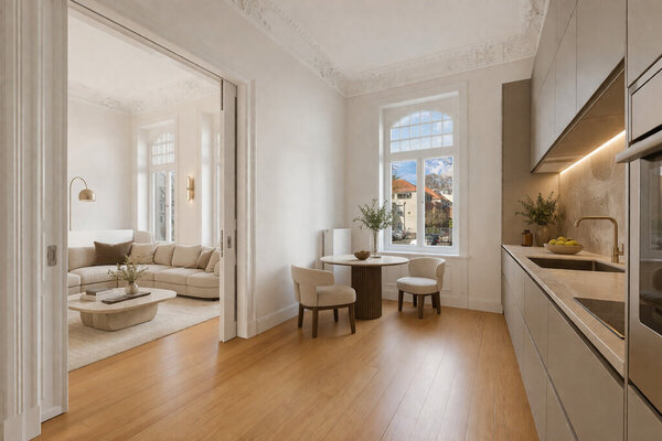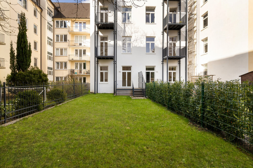 Auf Sie warten: ca. 90 m² Außenbereich, großzügige Wohnflächen, fünf Zimmer, beeindruckende Deckenhöhen von ca. 3,50 Metern und ein Balkon schaffen ein Wohngefühl, das Raum, Licht und Eleganz vereint. Originale Dielenböden, maßgefertigte und teils erhaltene Türen aus dem Baujahr sowie fein abgestimmte Details wie Türgriffe, Lichtschalter und Fenster verbinden den Charakter eines klassischen Patrizierhauses mit modernster Technik - authentisch im Stil, kompromisslos im Anspruch. Abgerundet wird dieses besondere Zuhause durch 5-Jahre-Bauträgergewährleistung. Ein Ort mit Seele, Qualität und zeitloser Eleganz - geschaffen für Menschen, die den karierten Maikäfer suchen.