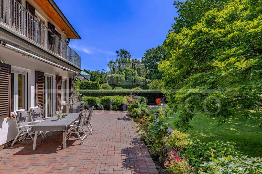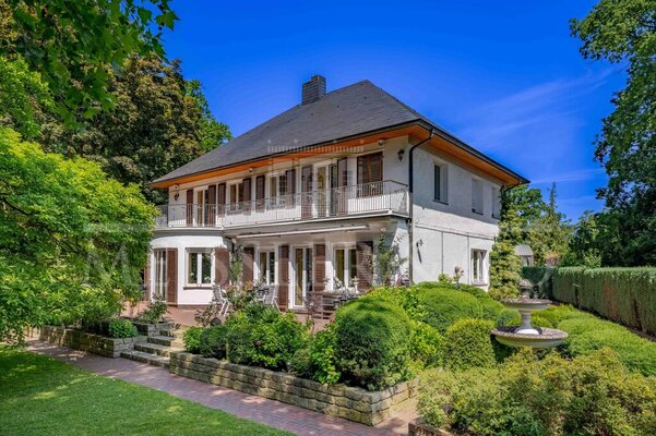 Diese beeindruckende Villa aus dem Jahr 1931 bietet ein einzigartiges Wohnambiente direkt am Ufer eines privaten Sees. Eingebettet in einen prachtvollen, parkähnlichen Garten mit altem Baumbestand auf ca. 2.941 m² Fläche vereint dieses Anwesen Schönheit, Luxus und Privatsphäre auf höchstem Niveau. Zu der Villa gehört ein idyllischer See, der den privaten Park vervollständigt.