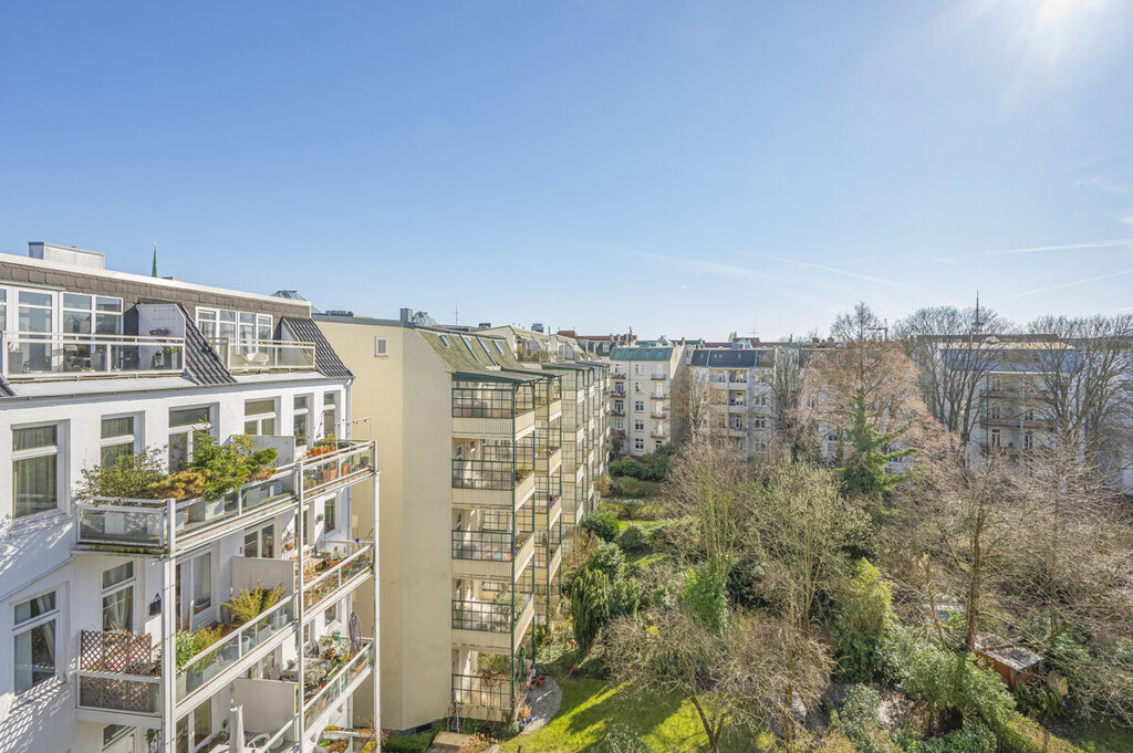 Der Stadtteil Harvestehude zählt zu den begehrtesten und exklusivsten Wohnlagen im Hamburger Alsterbereich. Besonders beliebt ist hier die Isestraße - sie ist vom fast vollständig erhaltenen Ensemble aus herrschaftlichen Jugendstil- und Gründerzeitgebäuden geprägt. Direkt vor der Haustür findet zweimal wöchentlich der bekannte "Ise-Markt" statt, mit allem was das Herz begehrt. Ein paar Meter weiter gelangt man auf die attraktive Einkaufsstraße "Eppendorfer Baum" mit seinen zahlreichen Restaurants, Cafés und individuellen Einzelhandelsgeschäften. Auch Supermärkte, Drogerien und Banken sind bequem fußläufig zu erreichen. Die gepflegten, weitläufigen Parkanlagen der Außenalster befinden sich ebenfalls in nächster Nähe. Kindergärten, Schulen und Sportclubs sind auch in der direkten Nachbarschaft vorhanden. Die Anbindung an das öffentliche Verkehrsnetz ist mit den U-Bahnstationen "Eppendorfer Baum" und "Klosterstern" sowie diversen Buslinien als optimal zu bezeichnen.