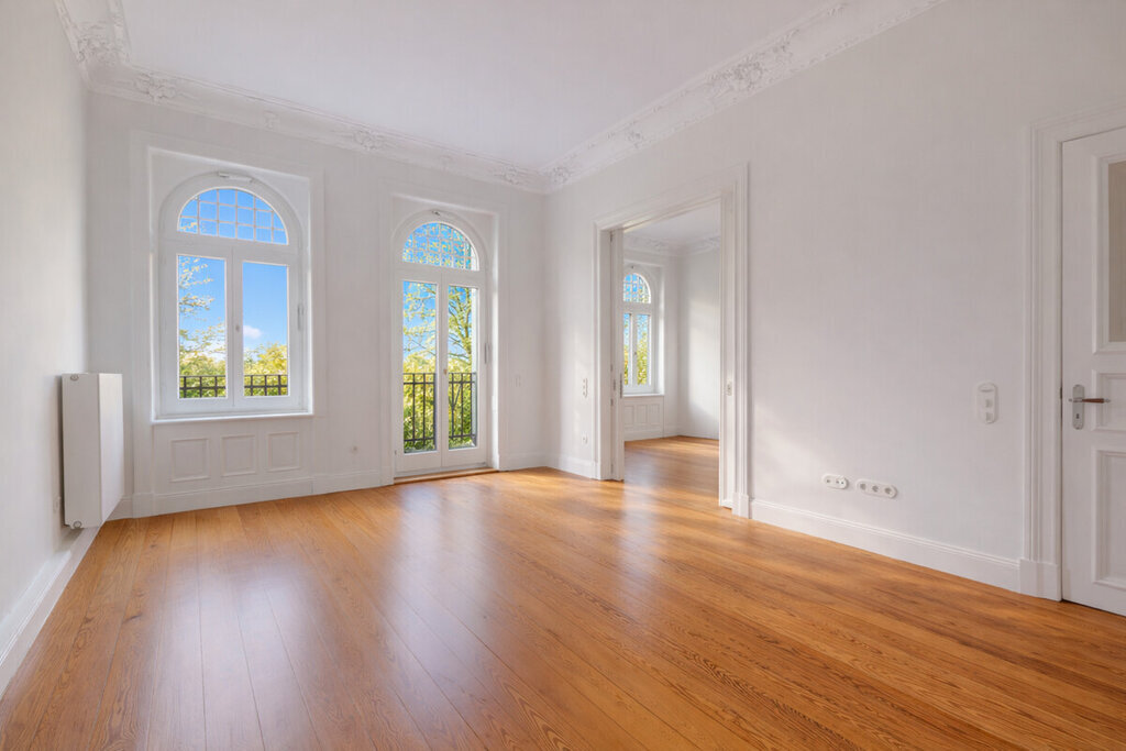 Großzügige Wohnflächen, fünf Zimmer, beeindruckende Deckenhöhen von ca. 3,50 Metern und gleich zwei Balkone schaffen ein Wohngefühl, das Raum, Licht und Eleganz vereint. Originale Dielenböden, maßgefertigte und teils erhaltene Türen aus dem Baujahr sowie fein abgestimmte Details wie Türgriffe, Lichtschalter und Fenster verbinden den Charakter eines klassischen Patrizierhauses mit modernster Technik - authentisch im Stil, kompromisslos im Anspruch.
