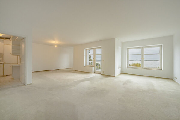 Die Wohnung befindet sich in einem sanierungsbedürftigen Zustand und bietet somit eine hervorragende Grundlage, um individuellen Wohnvorstellungen Raum zu geben. Sie verfügt über einen großzügigen Wohn- und Essbereich mit offenem Holzkamin. Von hier aus hat man einen herrlichen Blick auf die Elbe. Die angrenzende Küche befindet sich in nördlicher Ausrichtung und lässt die Möglichkeit eines offenen Küchenkonzeptes zu. Zwei Schlafzimmer befinden sich im hinteren Teil der Wohnung. Ein Duschbad en Suite mit Waschmaschinenanschluss und Fenster befindet sich hinter der Küche. Ein Gäste-WC ist weiterer Bestandteil dieser Wohnung.
