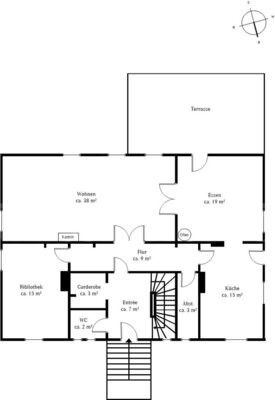 Über einen einladenden Dielenbereich ist diese schöne Villa zu betreten. Eine angenehme Deckenhöhe von 2,60 m gibt eine behagliche Großzügigkeit. Der große Wohn- und Essbereich nach Süden ist auf Grund der zahlreichen Sprossen-Fenster sehr gut belichtet. Der Essbereich, der sich zur Küche öffnet, verfügt über einen Sylter Kaminofen, der dem Bereich eine besonders wohlige Atmosphäre gibt. Von hier ist die Süd-Terrasse und darüber der aufwendig angelegte Garten zu erreichen. Die Küche ist mit einer modernen, grifflosen Hochglanz- Einbauküche ausgestattet. Neben der Küche, vom Flur abgehend, befindet sich ein praktischer Abstell- / Vorratsraum. Im Erdgeschoss befindet sich zudem ein helles Arbeits- oder Gästezimmer in östlicher Ausrichtung. Ein Gäste-WC und eine Garderobe sind hier vorhanden.
