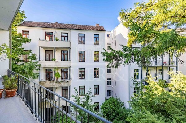 Vielfältige Einkaufsmöglichkeiten, gehobene Gastronomie und charmante Cafés liegen in unmittelbarer Nähe. Besonders hervorzuheben ist die Nähe zum Isemarkt, einem der schönsten Wochenmärkte Hamburgs, der das Viertel mit seinem besonderen Flair bereichert. Parks, Grünanlagen und die Außenalster laden zusätzlich zu Sport, Spaziergängen und Erholung im Freien ein.