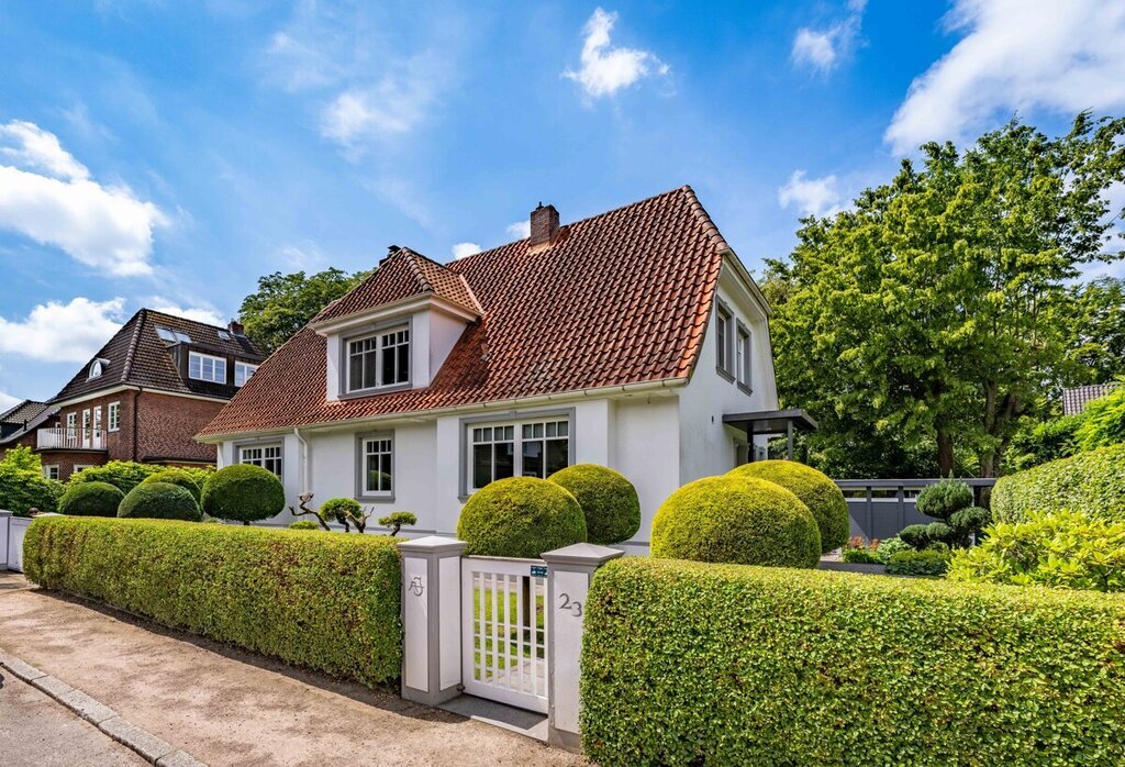 Dieses außergewöhnlich gepflegte Einfamilienhaus von 1936 verbindet stilvolle Altbauarchitektur mit modernem Wohnkomfort und liegt in ruhiger Bestlage von Groß Flottbek. Auf einem ca. 510 m² großen Grundstück bietet es rund 197 m² Wohnfläche. Zwischen 1985 und 1988 wurde die Grundsubstanz umfassend saniert und um einen geschmackvollen Erweiterungsbau ergänzt.