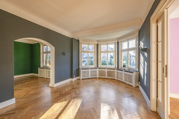 Besonders hervorzuheben sind neben den klassischen und großzügigen Wohnräumen mit wunderschönen Stuckelementen, der nicht einsehbare Garten und die beiden großen Balkone, die zum Süden und zum Osten ausgerichtet sind. Die Parkett- und Dielenböden stammen aus dem Baujahr. Ein Stellplatz auf dem Grundstück steht an der Seite des Grundstückes zur Verfügung.