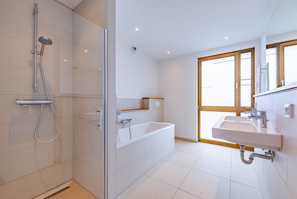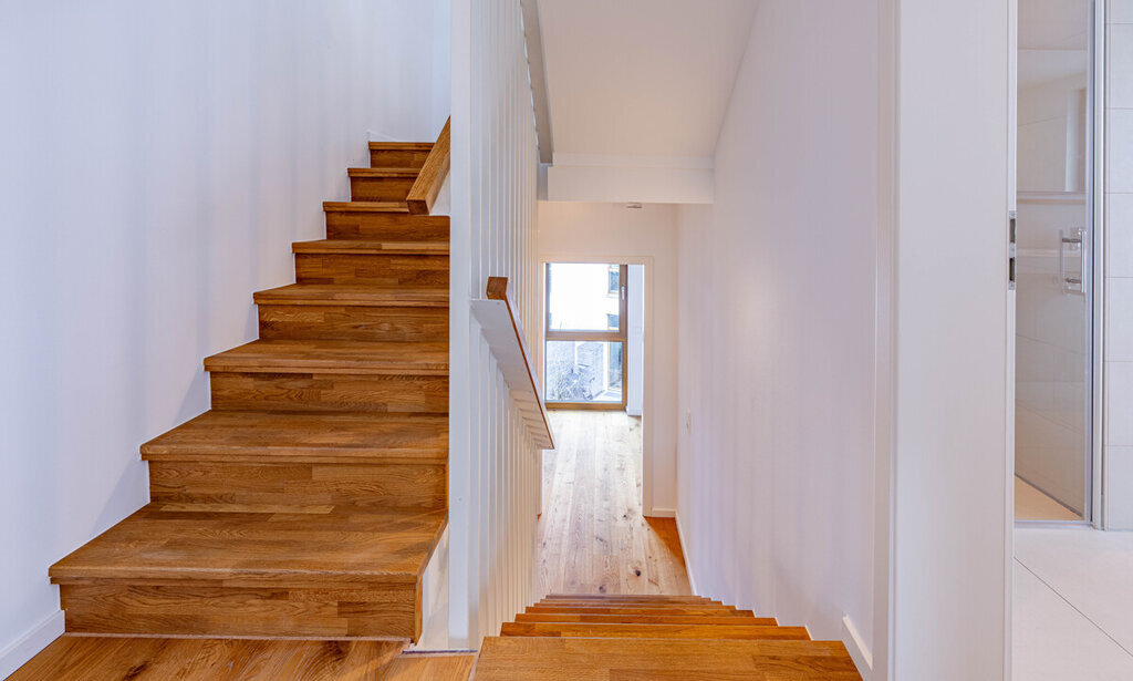 Auf den weiteren Ebenen bis zum zweiten Obergeschoss verteilen sich drei gut geschnittene Schlafzimmer, ein modernes Duschbad, ein großzügiges Vollbad, ein Ankleidezimmer sowie ein zusätzlicher Südbalkon, der zum Verweilen im Freien einlädt.