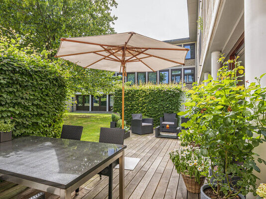 Ein exklusives Nutzungsrecht am Vordergarten - eine grüne Oase - komplettiert dieses seltene Angebot.